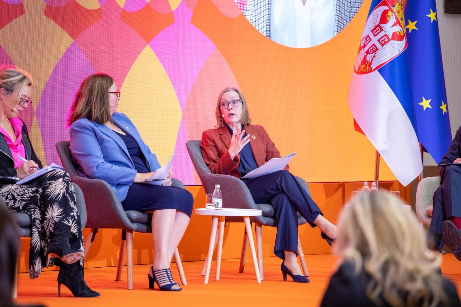 The conference, opened by the Prime Minister of the Republic of Serbia, Prof. Dr. Đuro Macut, featured a panel titled “Safe”, moderated by State Secretary Jovanović. The panelists included: United Nations Resident Coordinator in Serbia, Matilda Mordt; Ambassador of Canada, Michèle Cameron; Ambassador of France, Florence Ferreri; Deputy Head of Mission of Italy, Carlotta Colli; and the World Health Organization representative in Serbia, Fabio Scano.