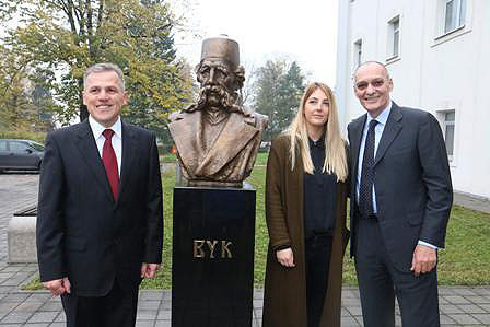 Биста Вука Стефановића Караџића, ауторке Саре Николић, коју је Универзитету Бањалука поклонила компанија Мтел (Телеком), на предлог Генералног конзулата, свечано је откривена 6. новембра, поводом обележавања 230 година од рођења реформатора и творца новог српског језика и књижевности.