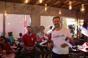 Фудбалским мечевима Бразила посвећује се неизмерна пажња, те је када Бразил игра, све осим појединих трговинских ланаца и угоститељских објеката затворено, како би сви били у прилици да прате утакмицу. Амбасада Србије организовала је праћење утакмице Бразил - Србија у ресторану, који је у власништву нашег држављанина, где се служе искључиво српски специјалитети. Са представницима Амбасаде, пријатељима из дипломатског кора, Министарства иностраних послова Бразила и нашом дијаспором, утакмицу су пратиле и екипе из ТВ „Глобо", „Корејо Бразилијенси", „СБТ", ТВ „Рекорд", ТВ „Банд", Агенције „Бразил" и многи други.