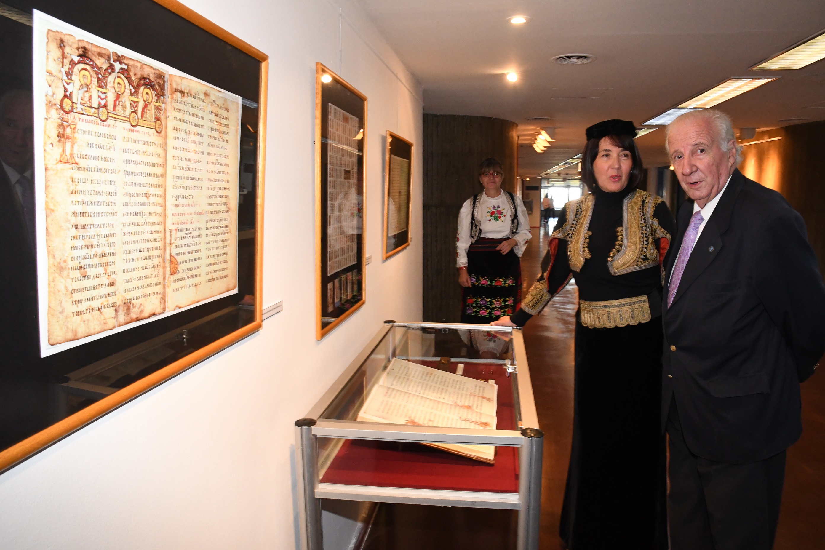 Изложбу су отвориле директорка Националне библиотеке Аргентине Елса Барбер и амбасадор Јела Баћовић. У кратком уводном излагању Барбер је изразила задовољство због отварања изложбе и сарадње, како са амбасадом у Буенос Ајресу, тако и са Народном библиотеком Србије. Амбасадор Баћовић је представила Мирослављево jеванђеље и његов историјски, културни и духовни значај.
