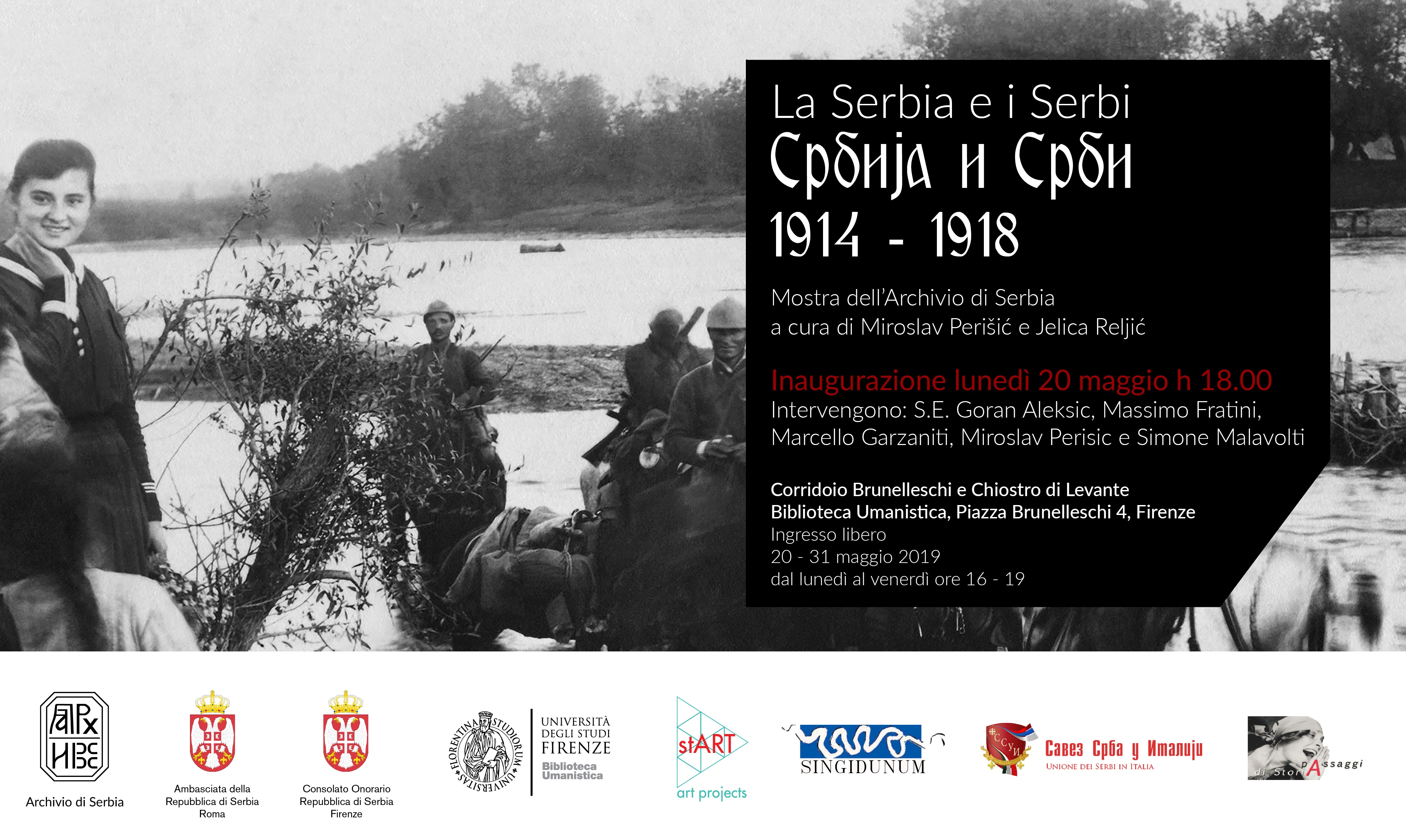 Изложба Архива Србије „Србија и Срби од 1914. до 1918" отворена је 20. маја у Библиотеци друштвених наука Универзитета Фиренца у сарадњи са почасним конзулатом Србије