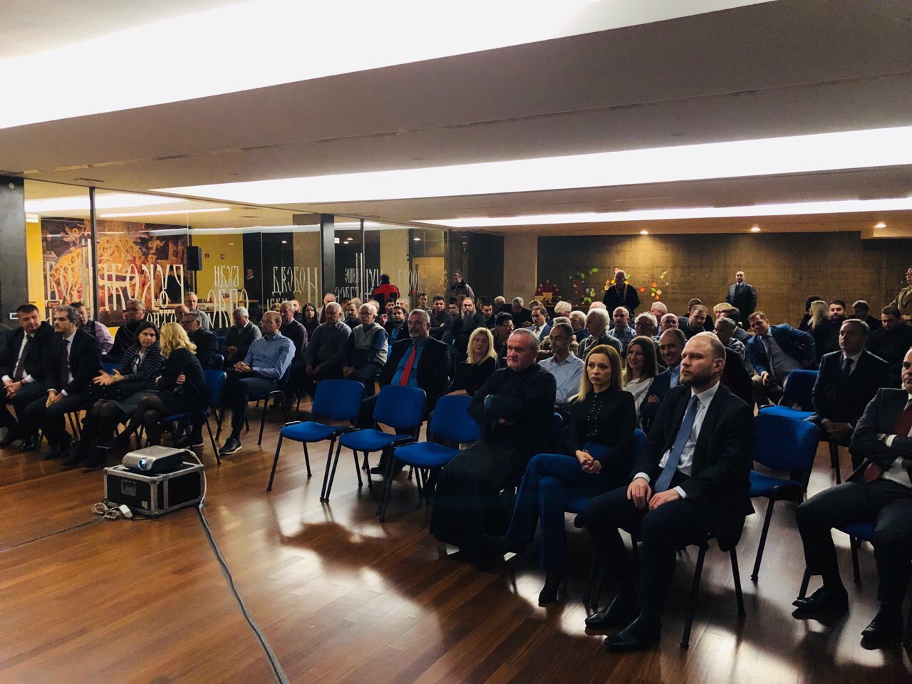 Пројекцији је присуствовало преко 100 званица, међу којима су били представници институција Словеније, од посланика до представника МСП, дипломатског кора, те представници наше дијаспоре и свештеници СПЦ.