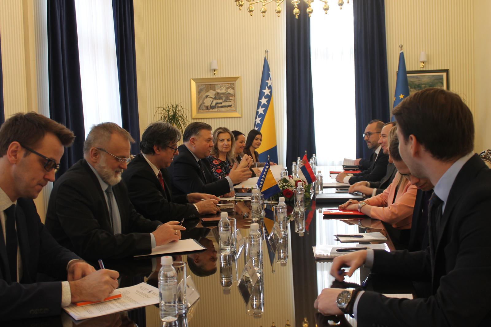 Државни секретар у Министарству спољних послова Републике Србије Дамјан Јовић и заменик министра иностраних послова Босне и Херцеговине Јосип Бркић предводили су данас у Сарајеву билатералне политичке консултације два министарства.