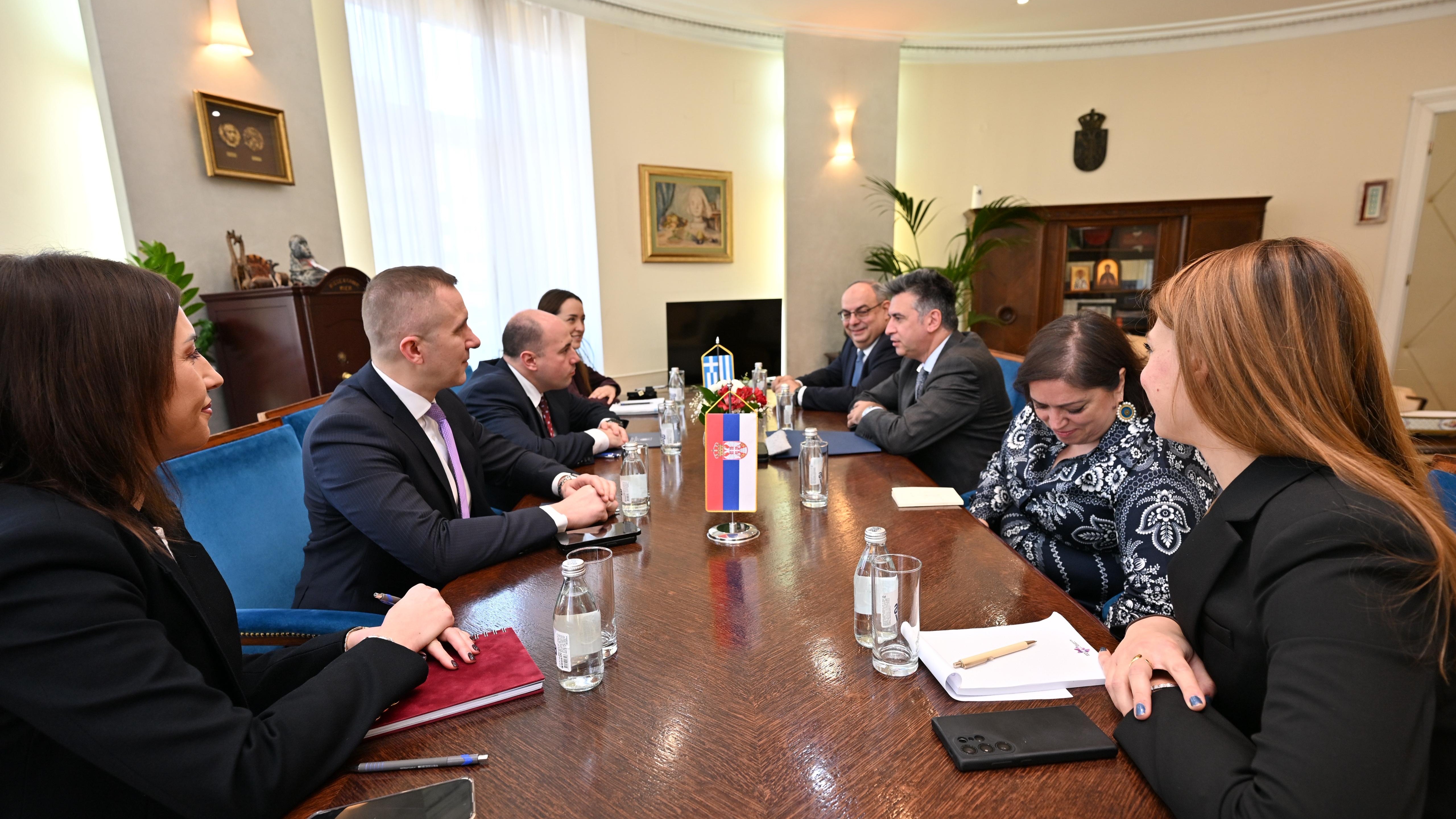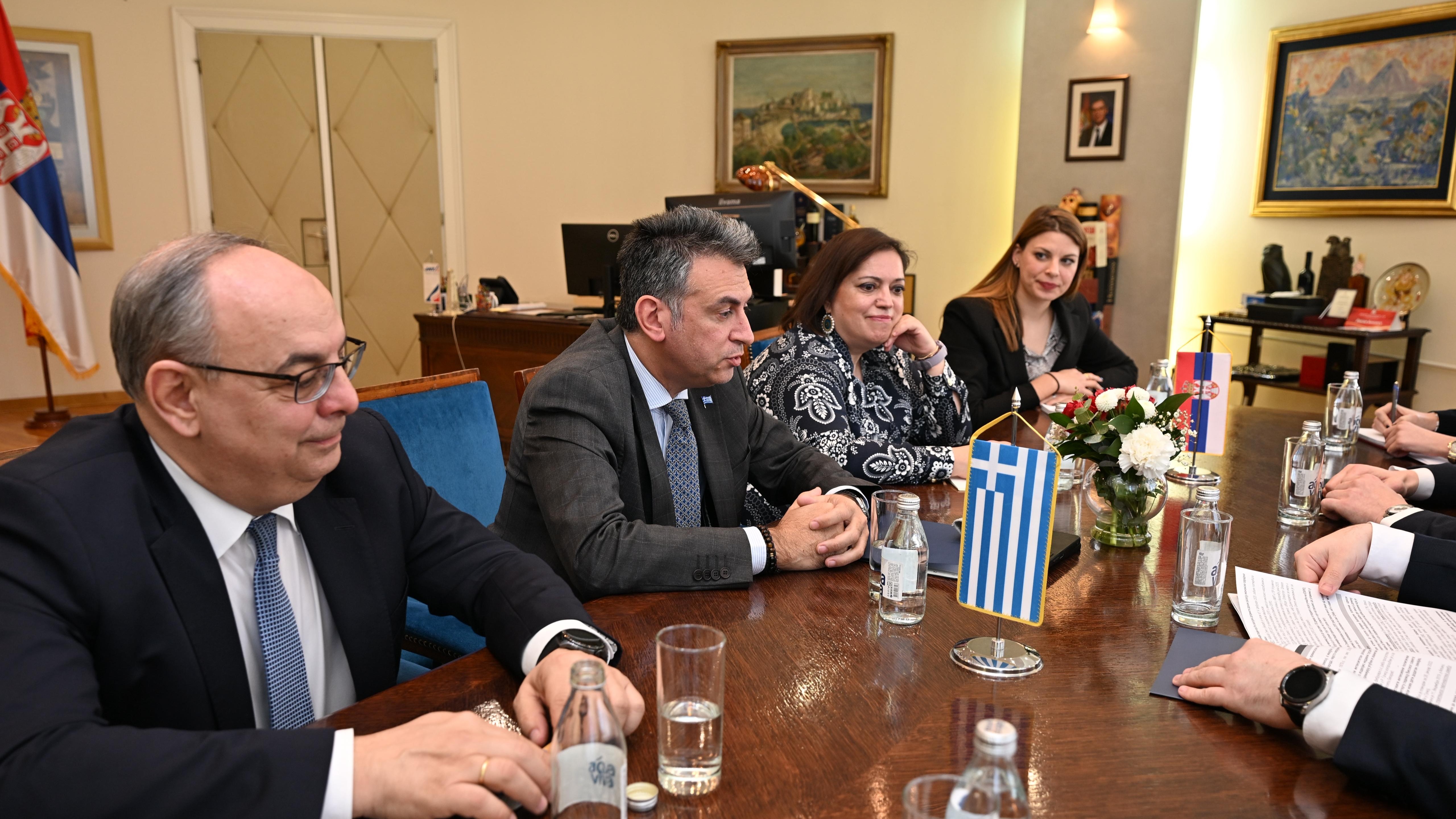 Састанку су присуствовали и амбасадорка Републике Грчке у Републици Србији Марија Леванди, шеф Одељења за економске и трговинске односе у Амбасади Грчке Адонис Катеподис, као и сарадница генералног секретара Олимпија Иконому.