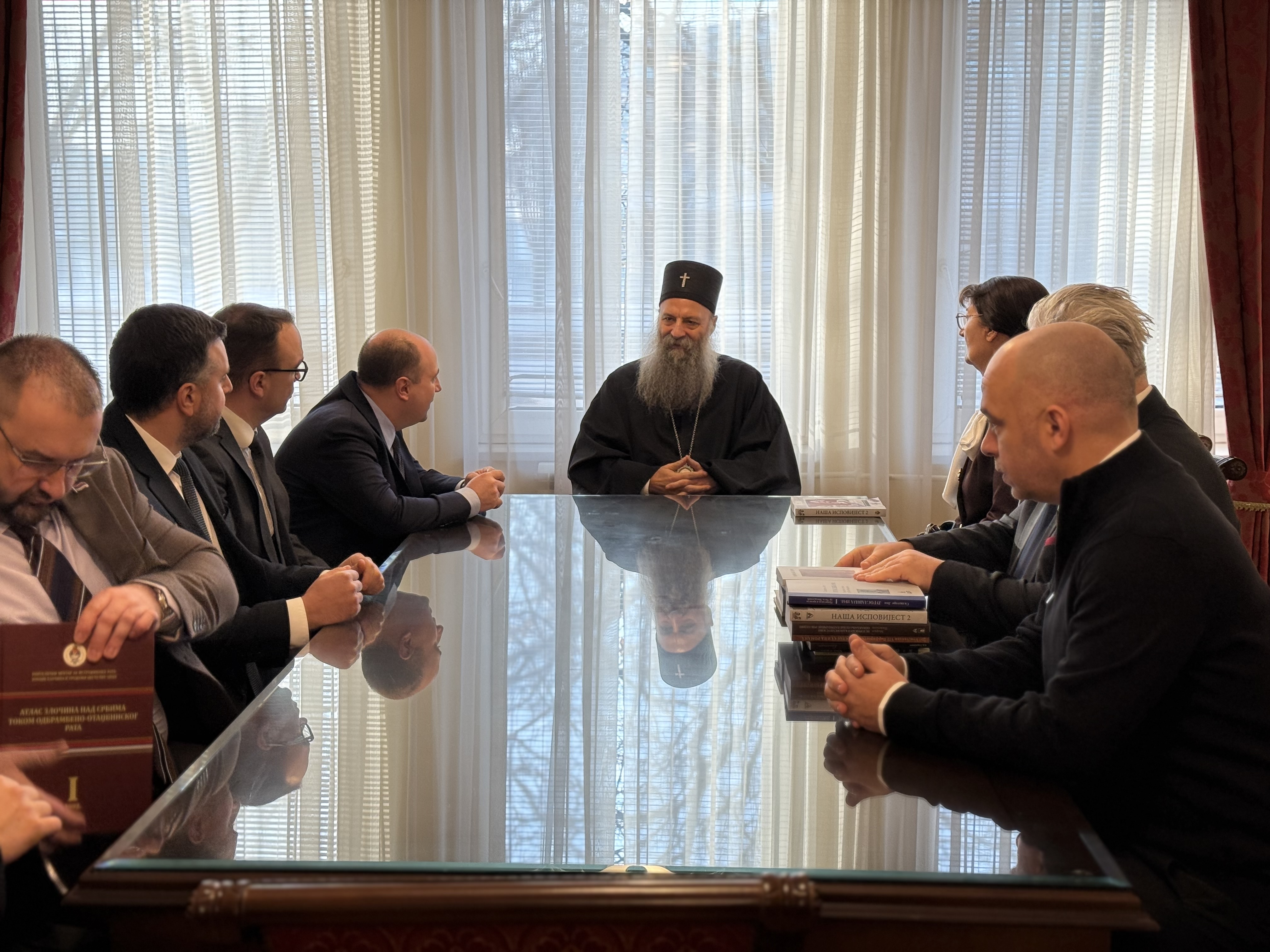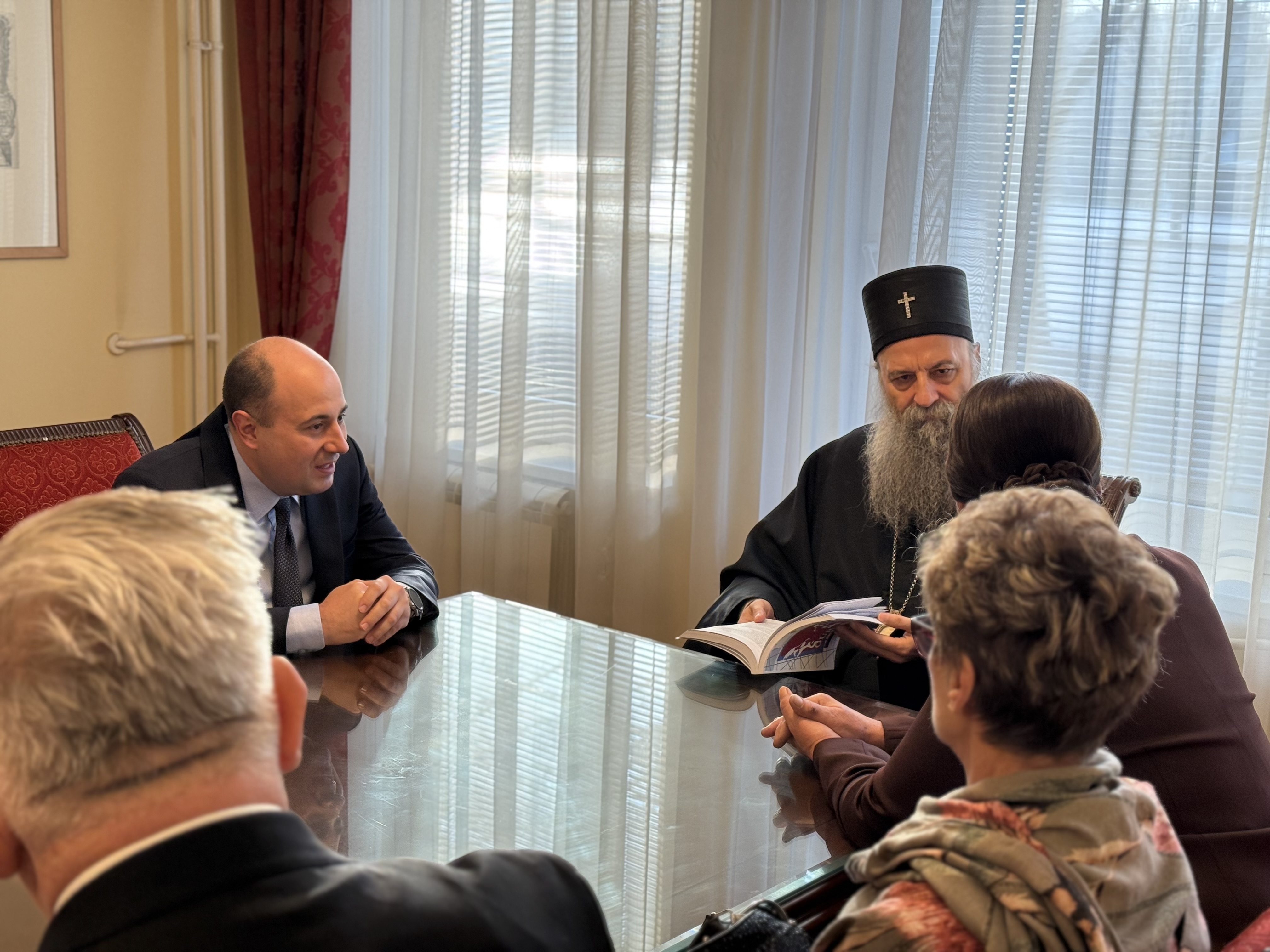 Kozarev conveyed the greetings of Minister Marko Đurić and briefed the Patriarch on the promotion of the second volume of the book “Our Testimony – Women Victims of War from Republika Srpska 1992–1995,” to be held today at the premises of the Ministry of Foreign Affairs. He noted that, in addition to the Ministry, the implementation of the project—conducted in cooperation with the Association of Women Victims of War—was supported by the aforementioned institutions, with the engagement of Ambassador Vranješ. He emphasized that the primary objective of the joint efforts invested in the preparation of the book was guided by