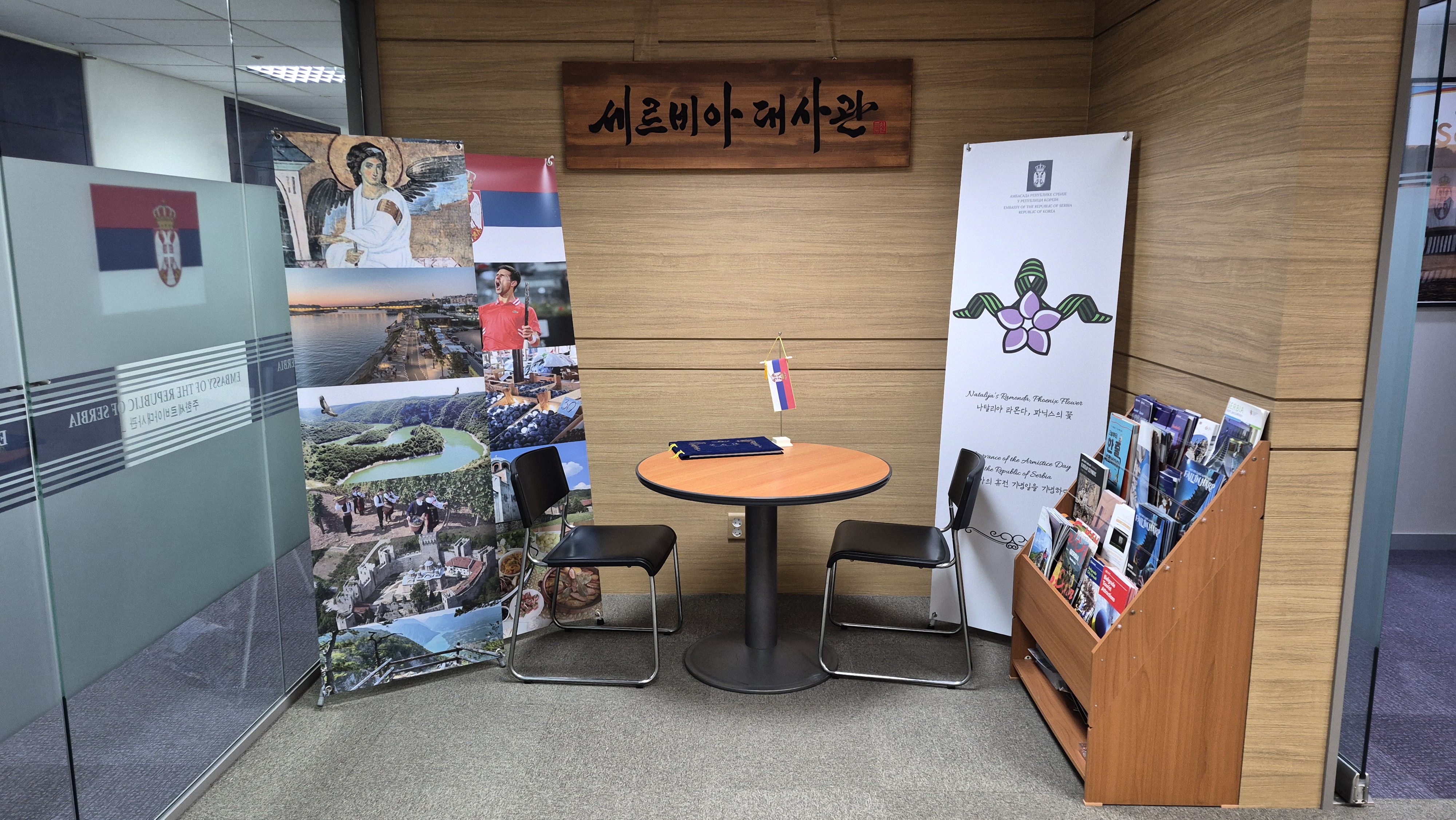 Директор Мултикултурног музеја у Сеулу Ким Јун-те донирао је Амбасади Републике Србије у Републици Кореји дрвену таблу са натписом „Амбасада Србије у Кореји“, израђену у стилу традиционалне корејске калиграфије. Донација је реализована у просторијама Амбасаде, у присуству амбасадора Немање Грбића.