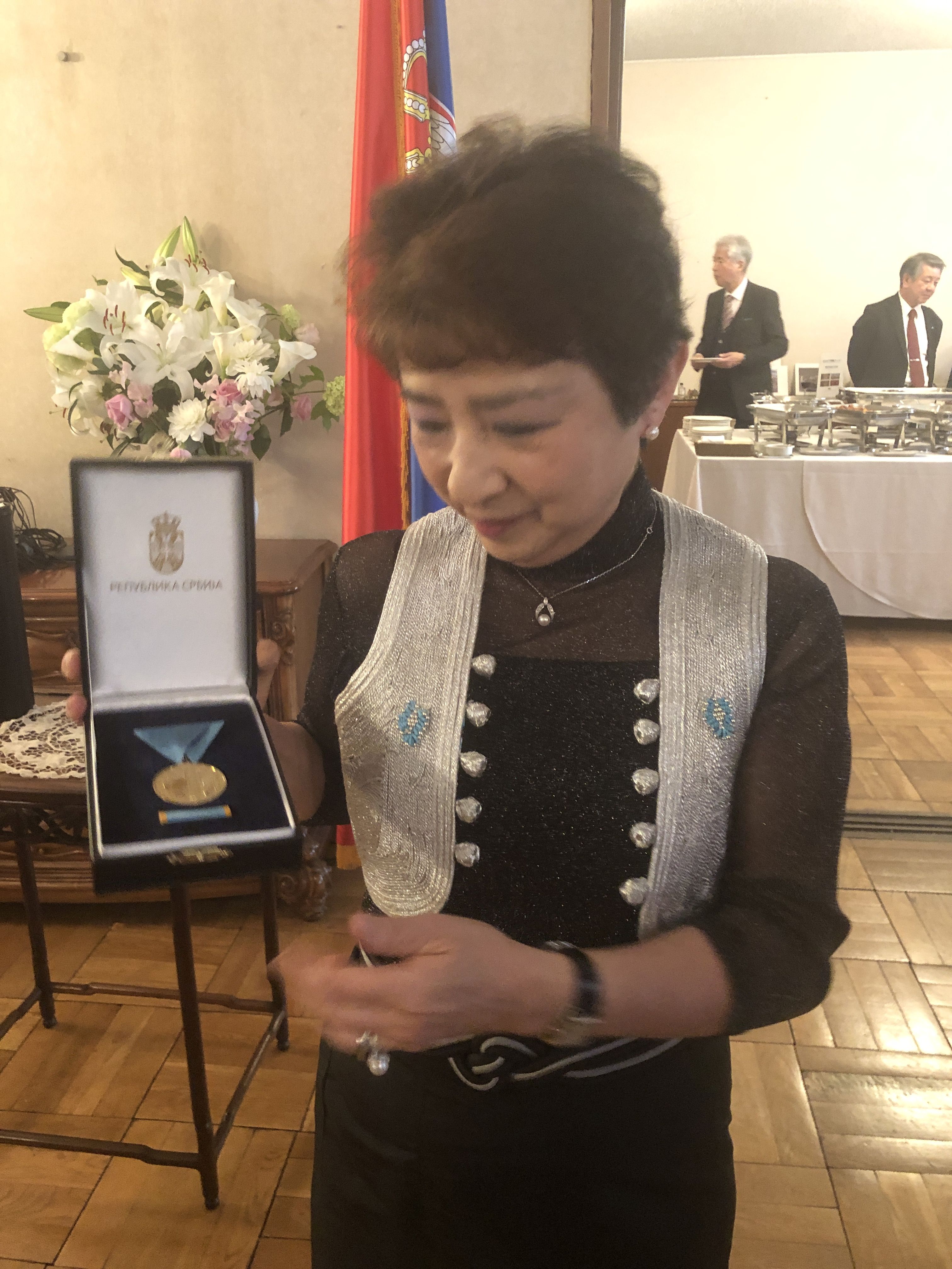 Председник Друштва Јапан - Србија и почасни грађанин Београда Тадаши Нагаи у здравици је истакао да је Србија још увек недовољно позната у Јапану, али да захваљујући залагању Ецуко Цунозаки на промовисању српске културе, а посебно српске музике, постаје препознатљива за бројне јапанске грађане. Гостима су послужени традиционална српска јела и пића. |