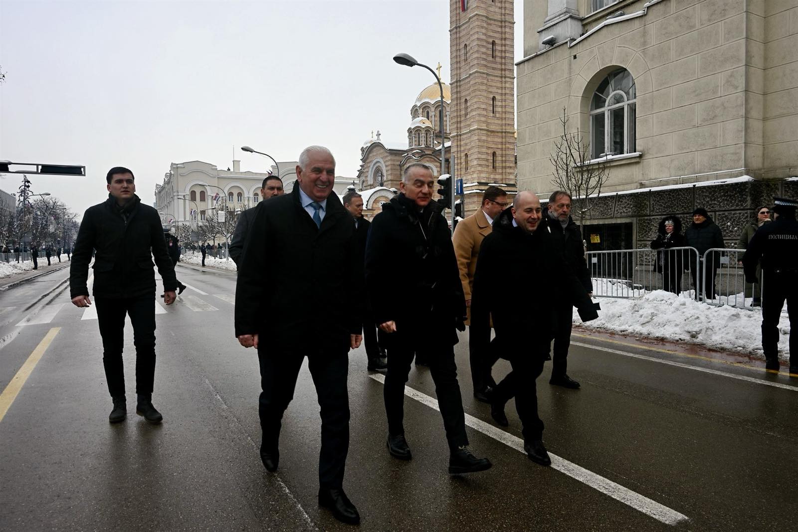 Посета је закључена присуством свечаном дефилеу припадника органа и организација Републике Српске на Тргу Крајине.
